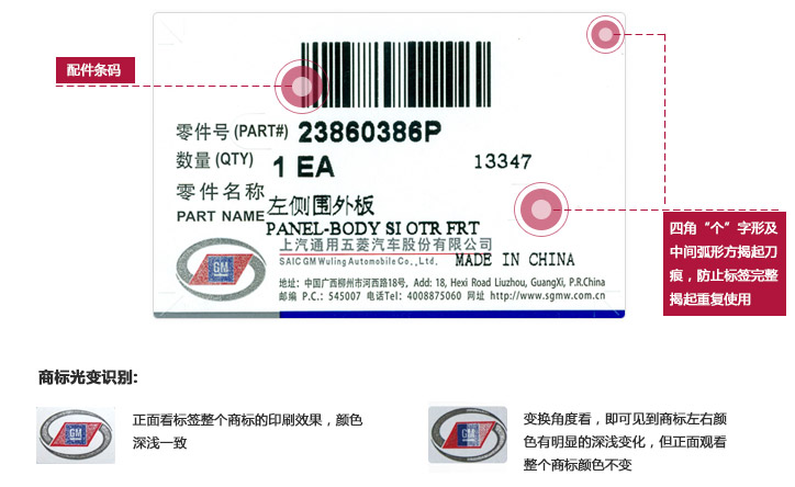 上汽通用五菱純正配件防偽識(shí)別